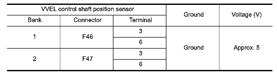 3. Check the voltage between VVEL control shaft position sensor harness connector and ground.