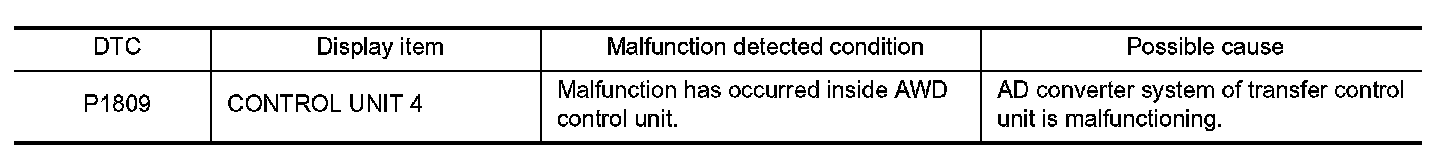Replace AWD control unit when self-diagnostic results show items other than this DTC simultaneously, too.