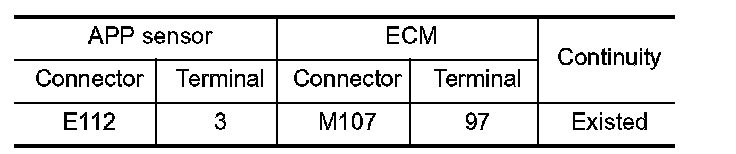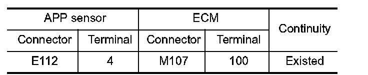 1. Check the continuity between APP sensor harness connector and ECM harness connector.
