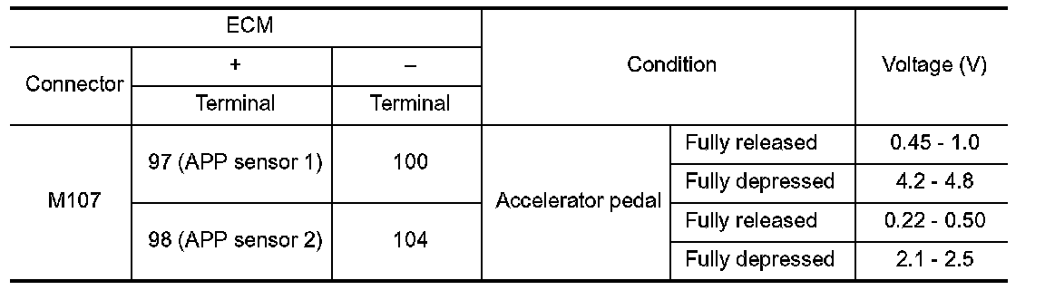 1. Disconnect accelerator pedal position (APP) sensor harness connector.