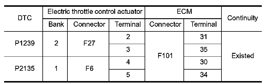 1. Check the continuity between electric throttle control actuator harness connector and ECM harness connector.