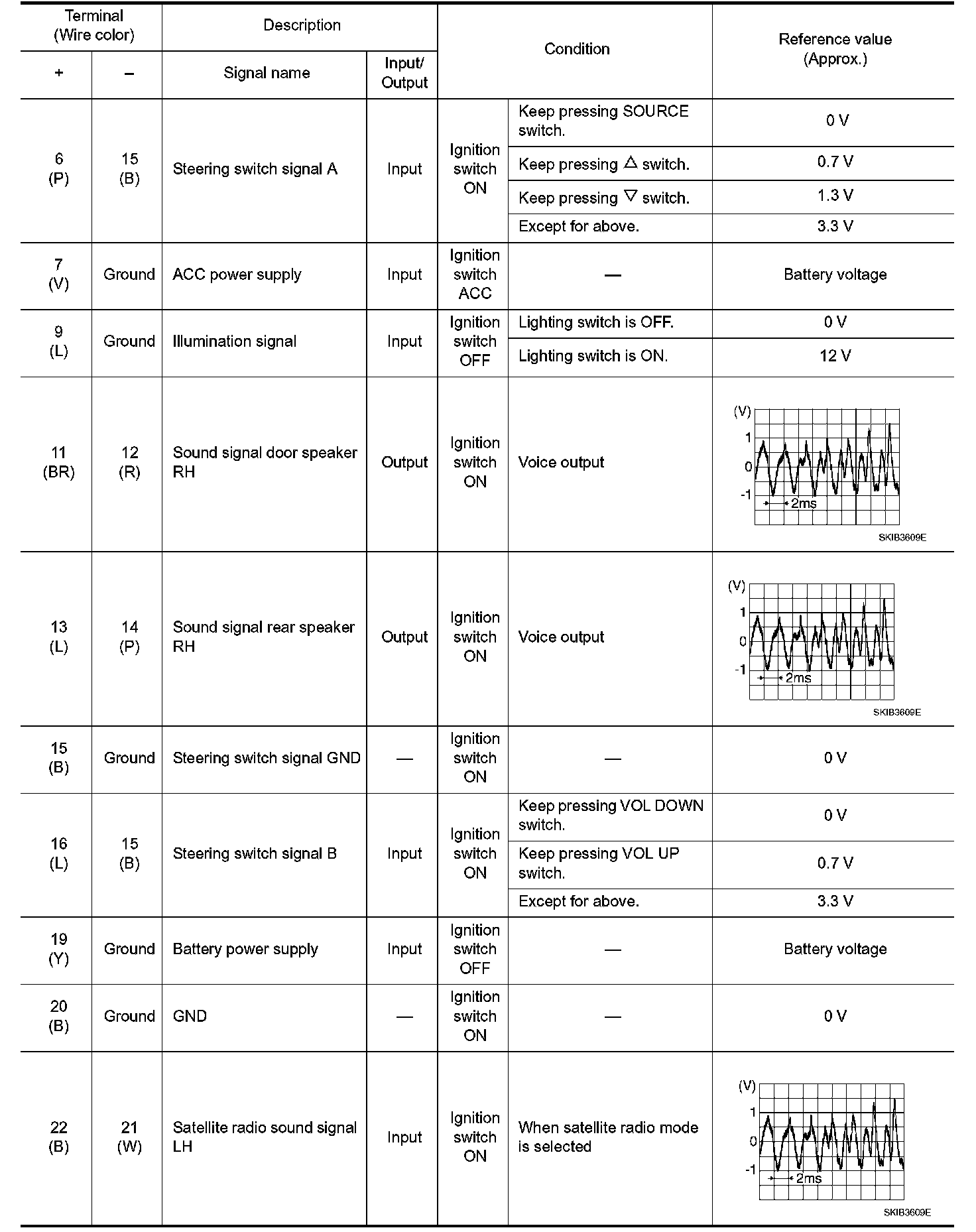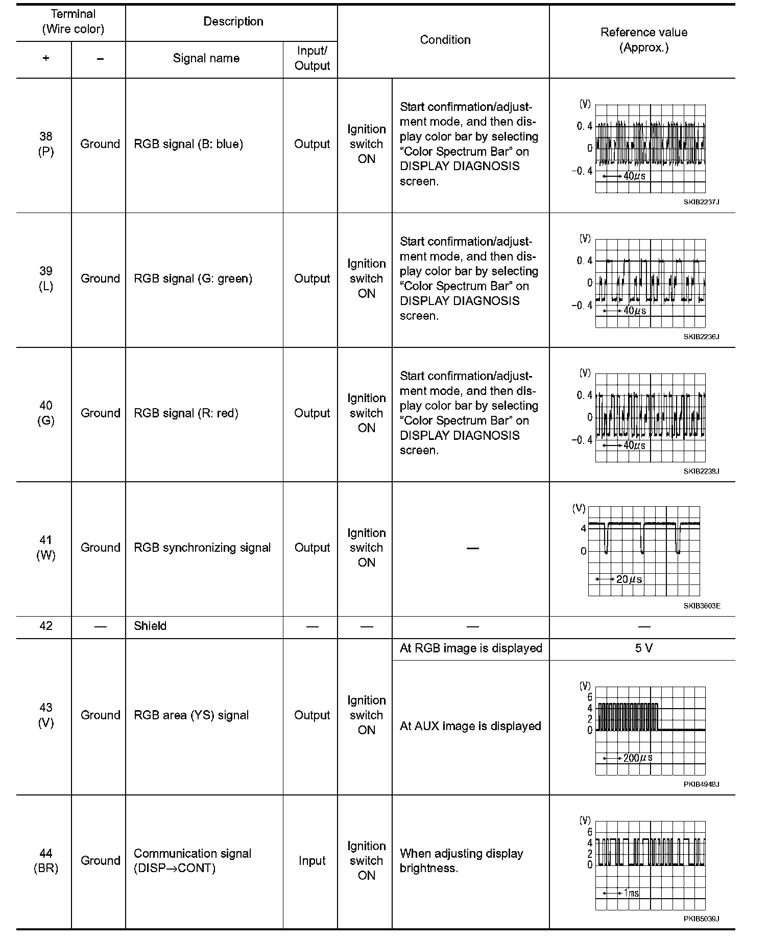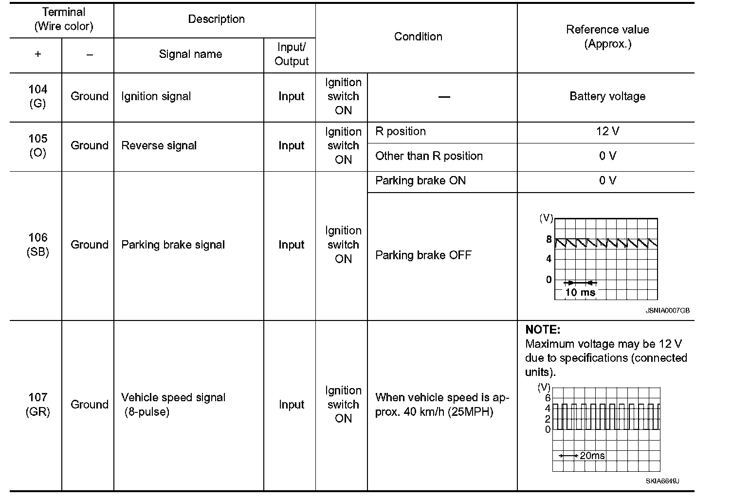 Pinout Values and Diagnostic Parameters