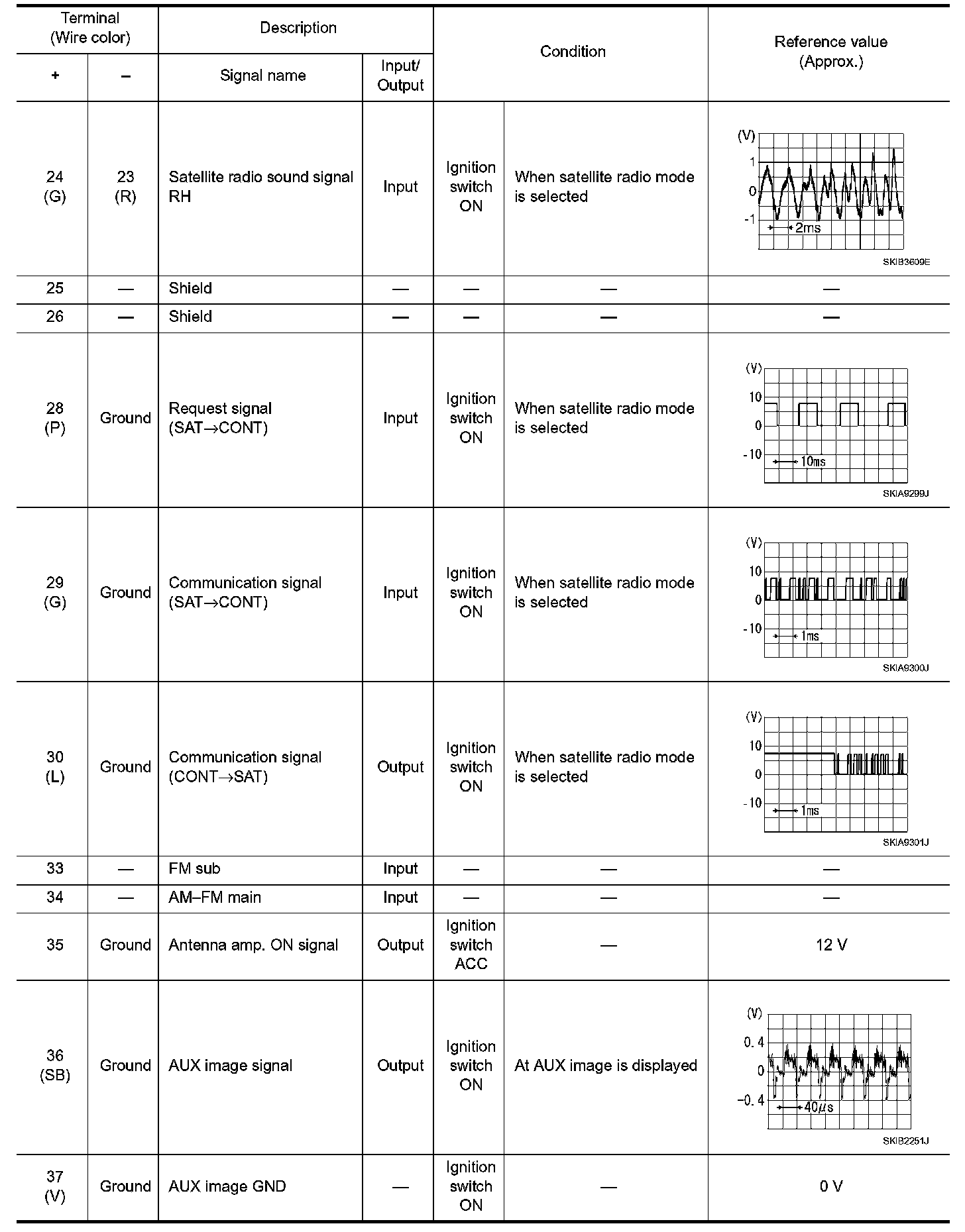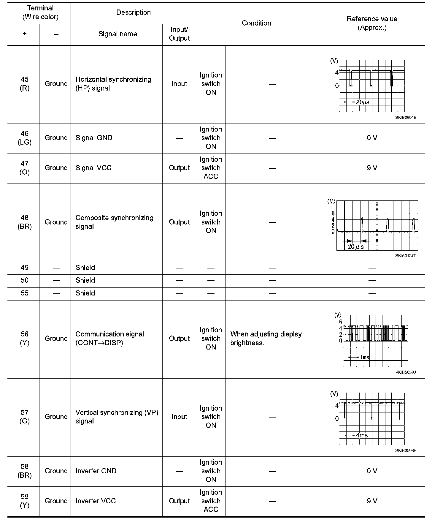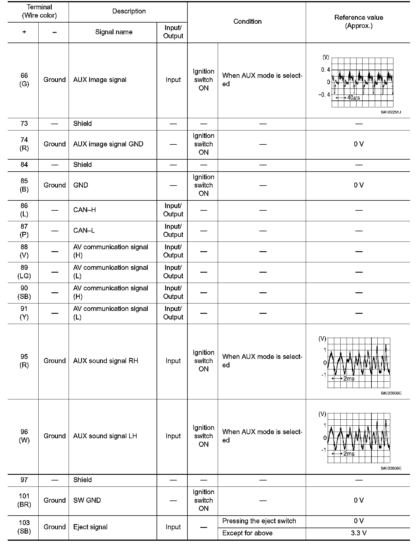 Pinout Values and Diagnostic Parameters