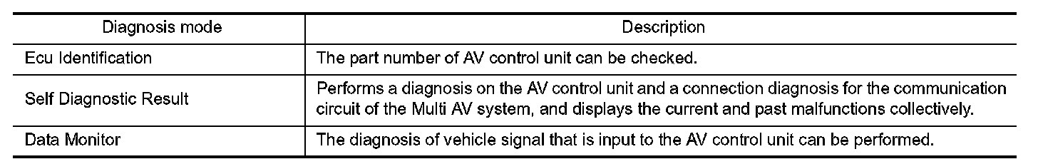 DIAGNOSIS SYSTEM (AV CONTROL UNIT)
