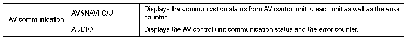 When "AV communication" of "CAN Diag Support Monitor" is selected, the following function will be performed.