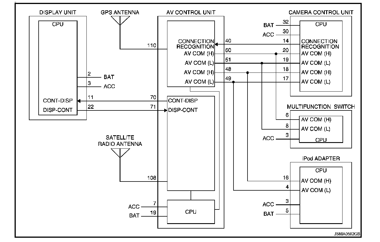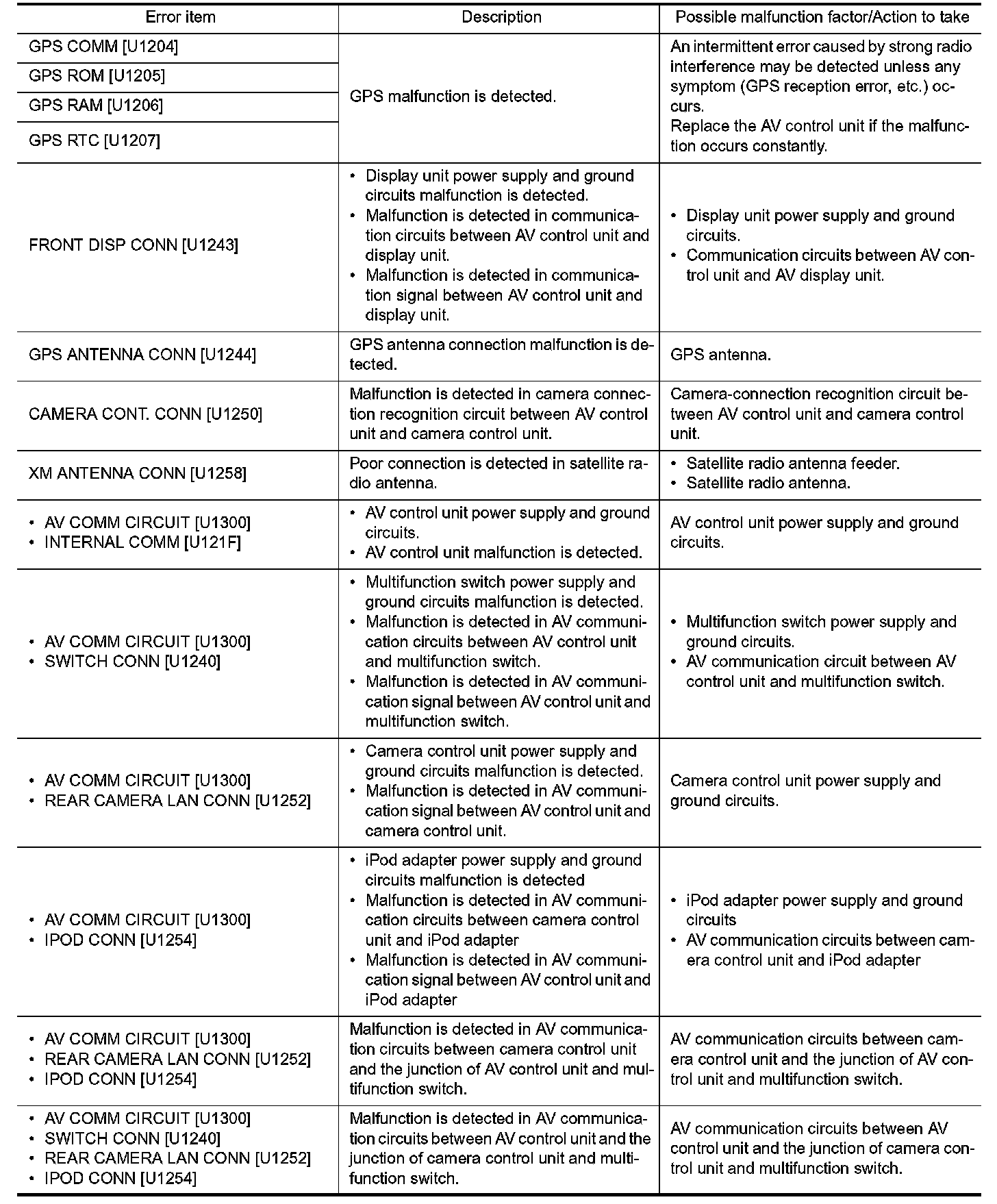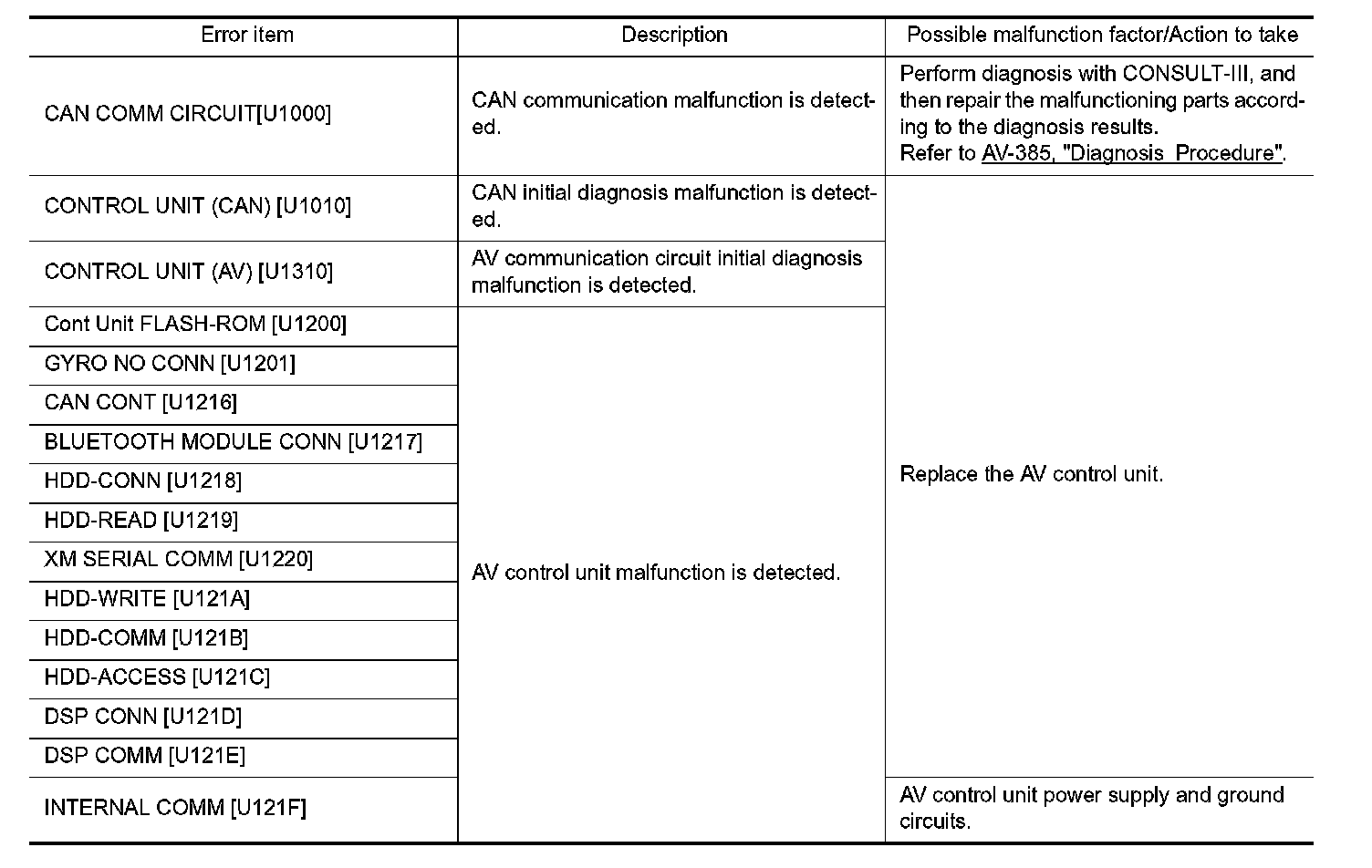 CONSULT-III performs the following functions via the communication with the AV control unit.