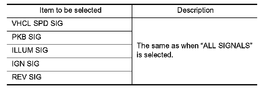 Allows the technician to select which vehicle signals should be displayed and displays the status of the selected vehicle signals.