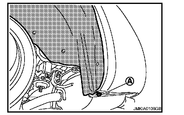 1. Remove bolt (A) of rear wheel house protector rear end.