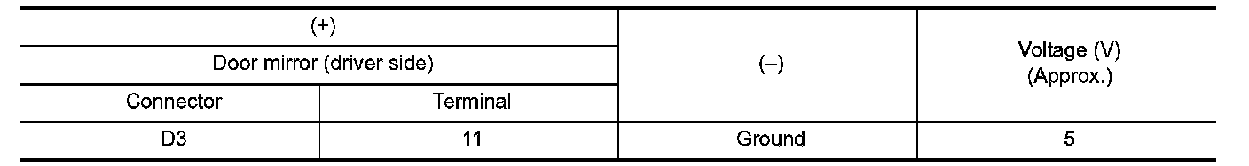 3. Check voltage between door mirror (driver side) harness connector and ground.