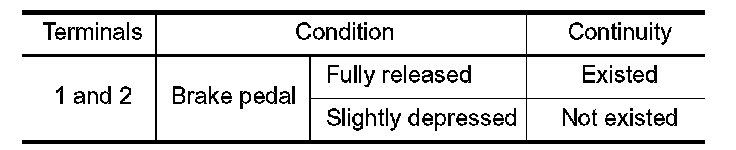 2. Check the continuity between ASCD brake switch terminals under the following conditions.