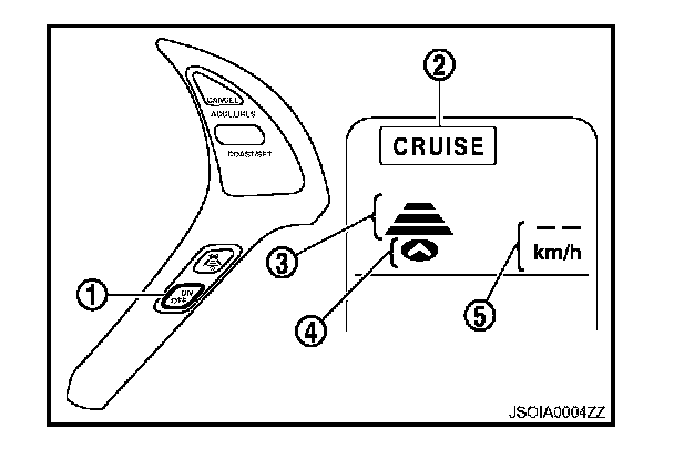 5. Check that the desired speed is set and vehicle-to-vehicle distance control mode control starts when releasing SET/COAST switch.