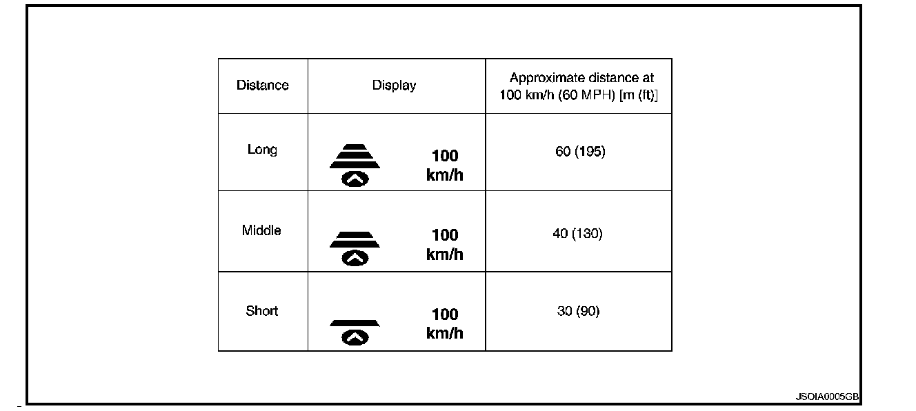 4. Check that the set distance indicator changes display in order of: (Long) to(Middle) to(Short).