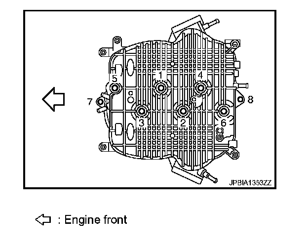 6. Loosen mounting bolts and nuts with power tool in the reverse order as shown in the figure to remove intake manifold collector.