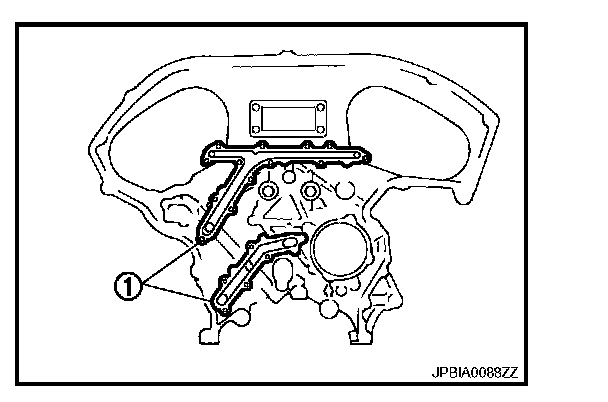 b. Apply liquid gasket with the tube presser (commercial service tool) to rear timing chain case back side as shown in the figure.