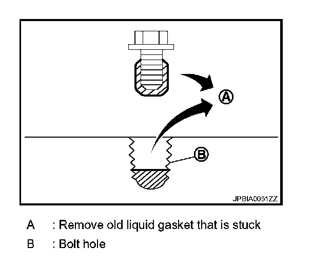 7. Remove old liquid gasket from bolt hole and thread.