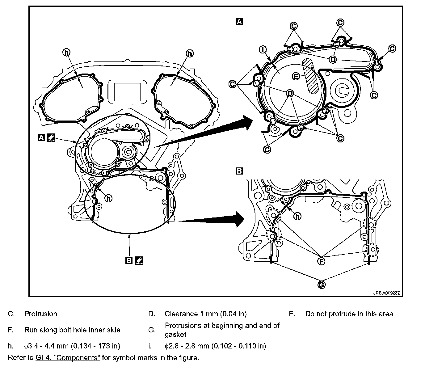 - If liquid gasket protrudes, wipe it off immediately.