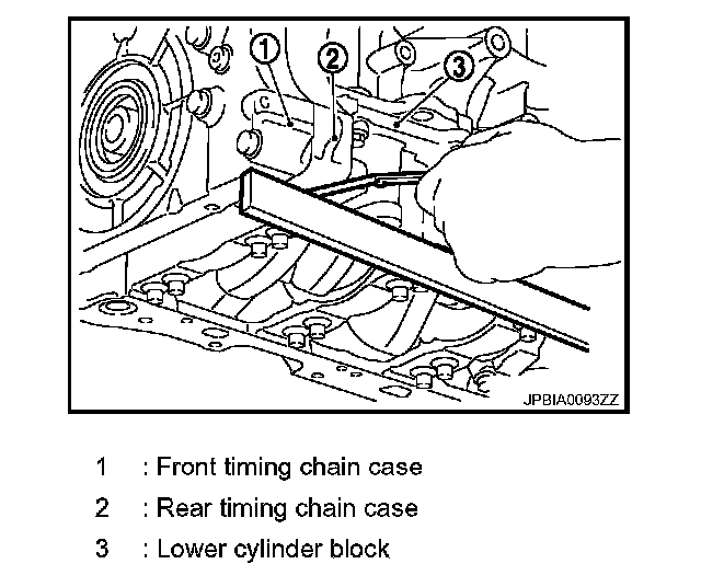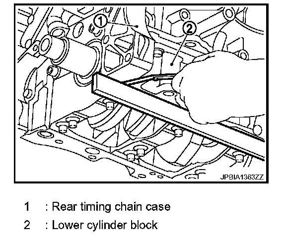 1. Remove front timing chain case and timing chain. Refer to Removal and Installation.