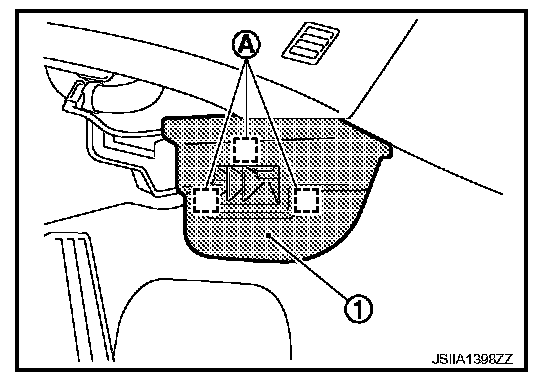 1. Remove mounting clips (A), and then remove foot grille (left) (1).