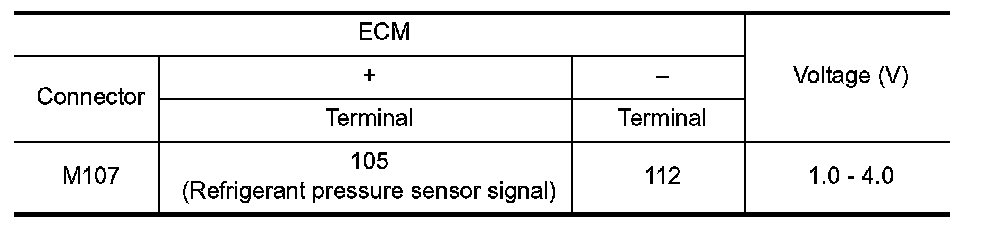 3. Check the voltage between ECM harness connector terminals as per the following.
