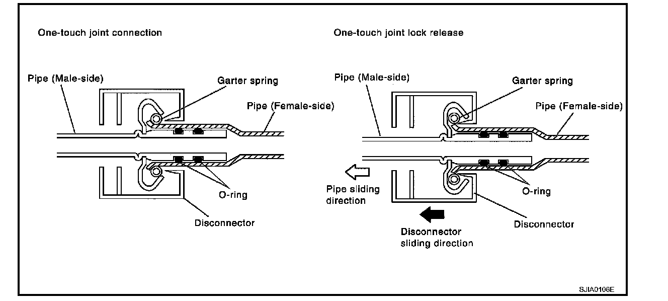 3. Slide disconnector farther so that inside diameter of garter spring becomes larger than outside diameter of female-side piping flare. Then male-side piping can be disconnected.