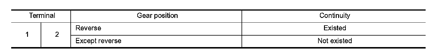 Check continuity between back-up lamp switch terminals with control lever turned to 1st to 6th and reverse position.