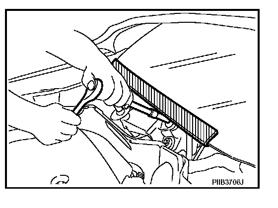 When performing the procedure after removing cowl top cover, cover the lower end of windshield with urethane, etc.