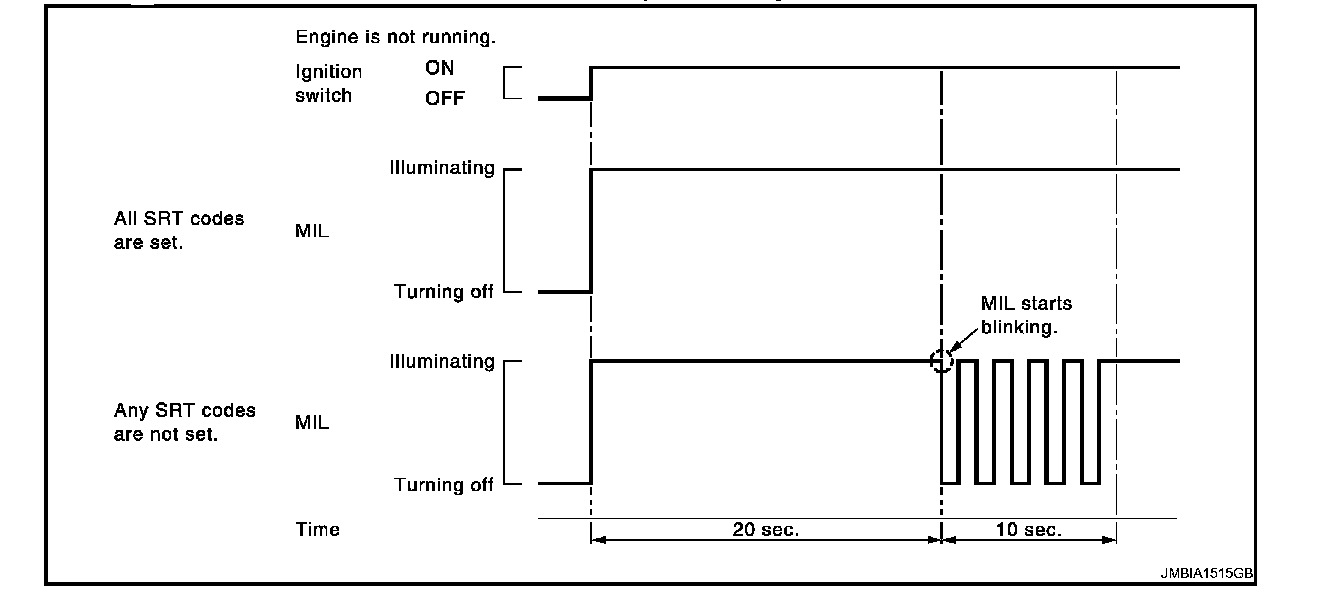 - When all SRT codes are set, MIL illuminates continuously.