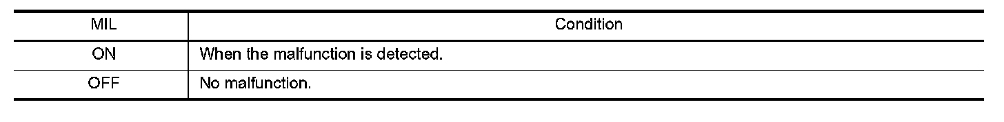 The malfunction indicator lamp (MIL) on the instrument panel illuminates when the same malfunction is detected in two consecutive trips (Two trip detection logic), or when the ECM enters fail-safe mode. (Refer to Fail Safe.)