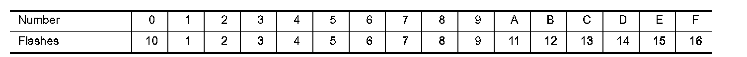 A particular trouble code can be identified by the number of four-digit numeral flashes per the following.