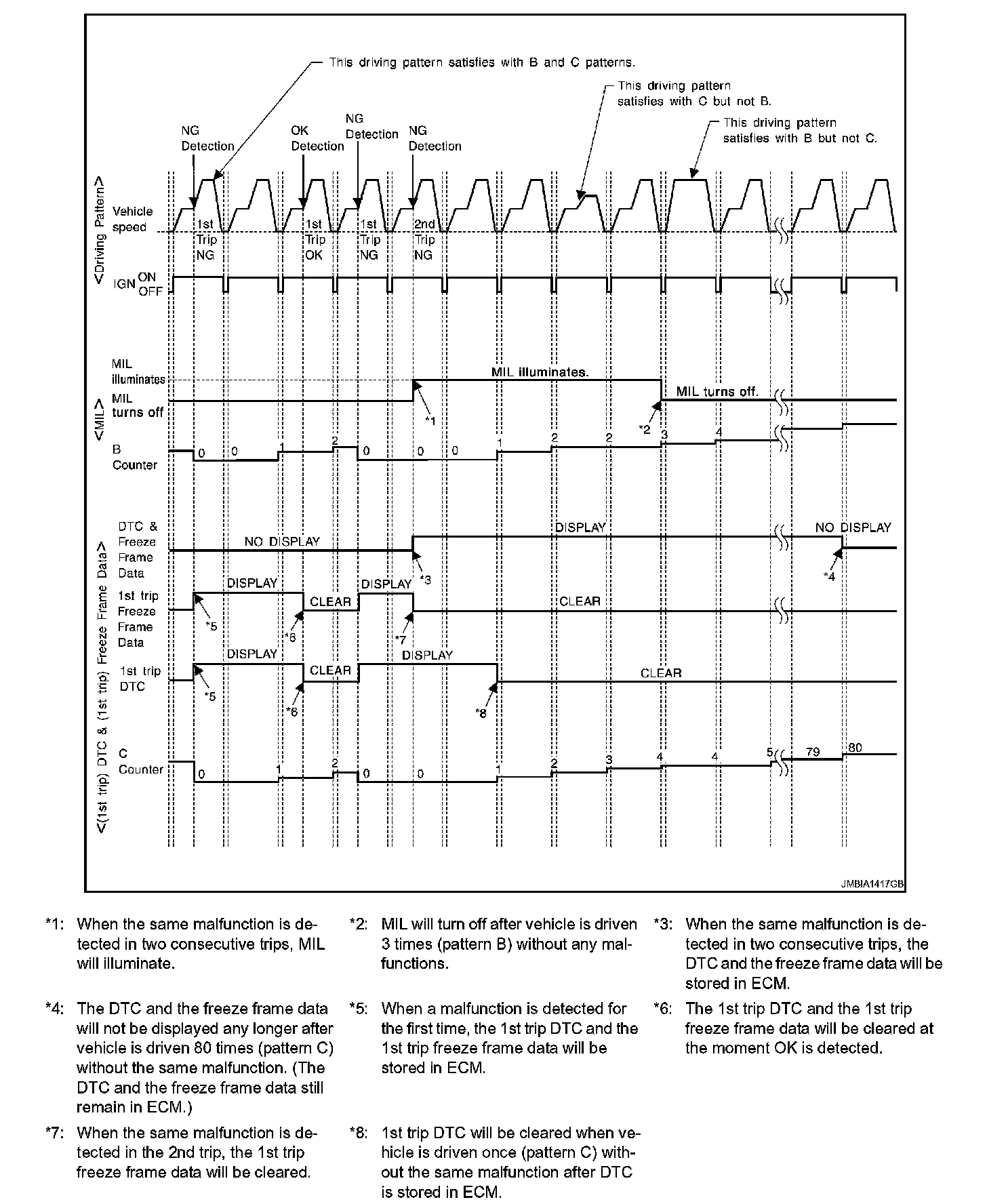- The B counter will be cleared when the malfunction is detected once regardless of the driving pattern.