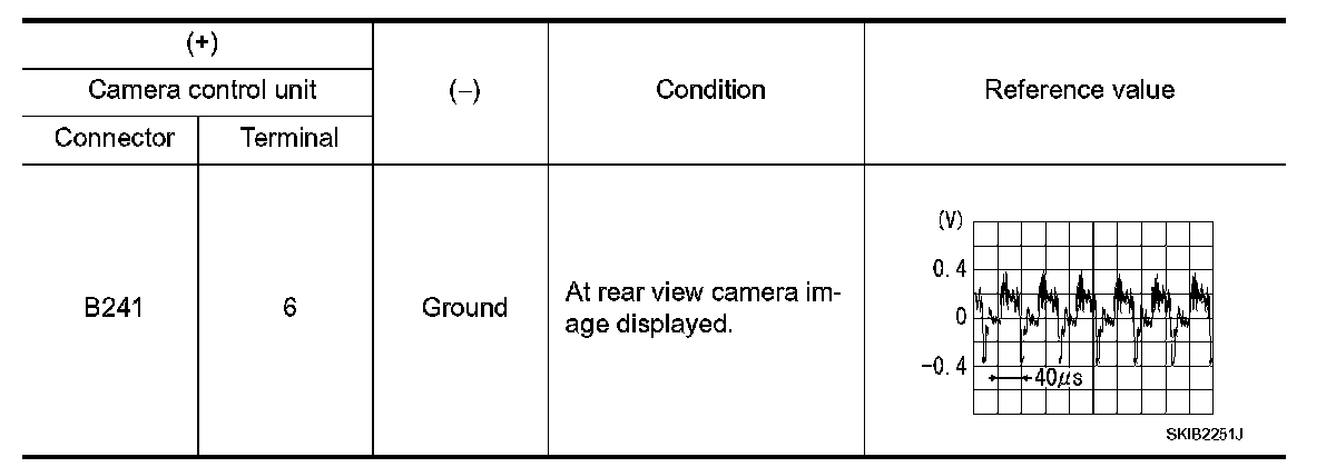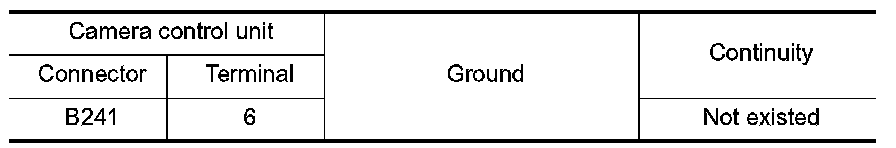3. Check continuity between camera control unit harness connector and rear view camera harness connector.