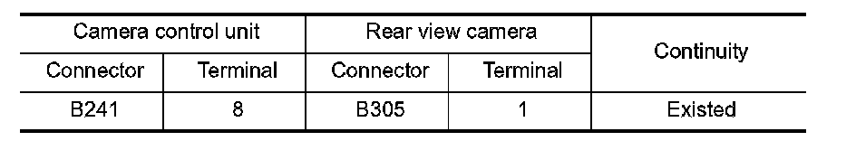 3. Check continuity between camera control unit harness connector and rear view camera harness connector.