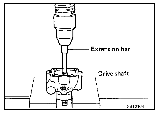 2. Apply recommended fluid to drive shaft, and press drive shaft into body assembly, then install snap ring.