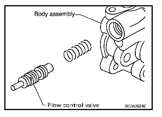 9. Remove connector bolt and O-ring, then pull out flow control valve and spring from body assembly.