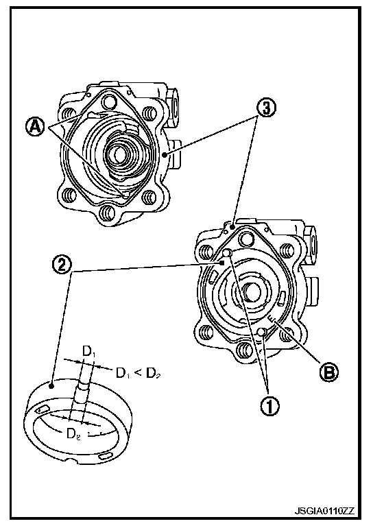 - Never confuse the assembling direction of the cam ring. If cam ring is installed facing the incorrect direction, it may cause pump operation malfunction.