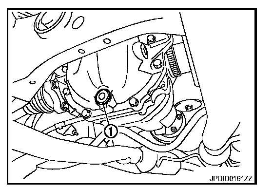 3. Set a gasket on drain plug (1) and install it to final drive assembly and tighten to the specified torque. Refer to Exploded View, "2WD