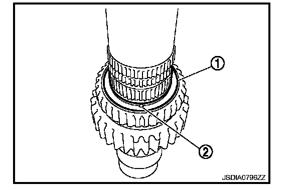 2. Remove snap ring (1) from main shaft.