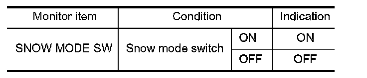 3. Check "SNOW MODE SW" indication under the following conditions.