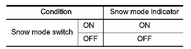 2. Check the snow mode indicator in the snow mode switch under the following condition.