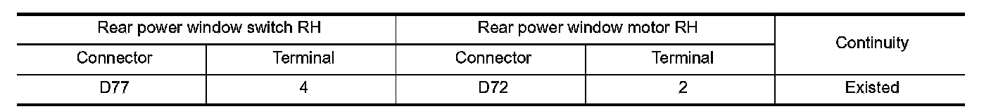 3. Check continuity between rear power window switch RH harness connector and rear power window motor