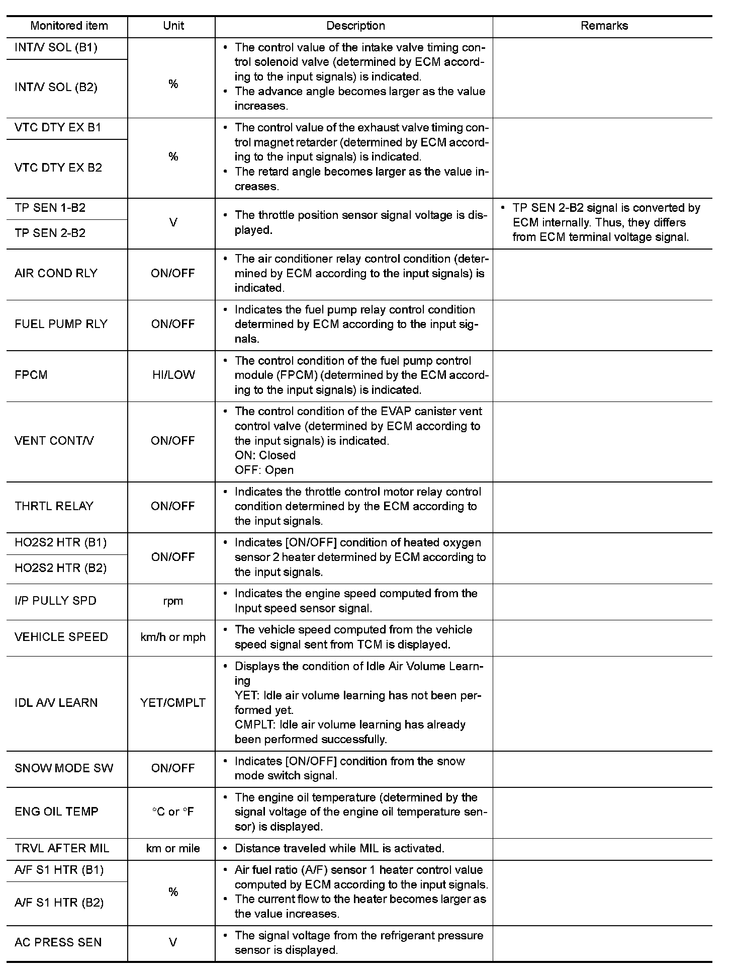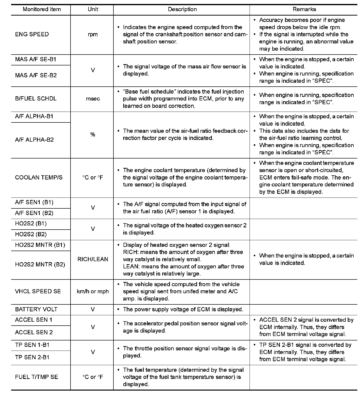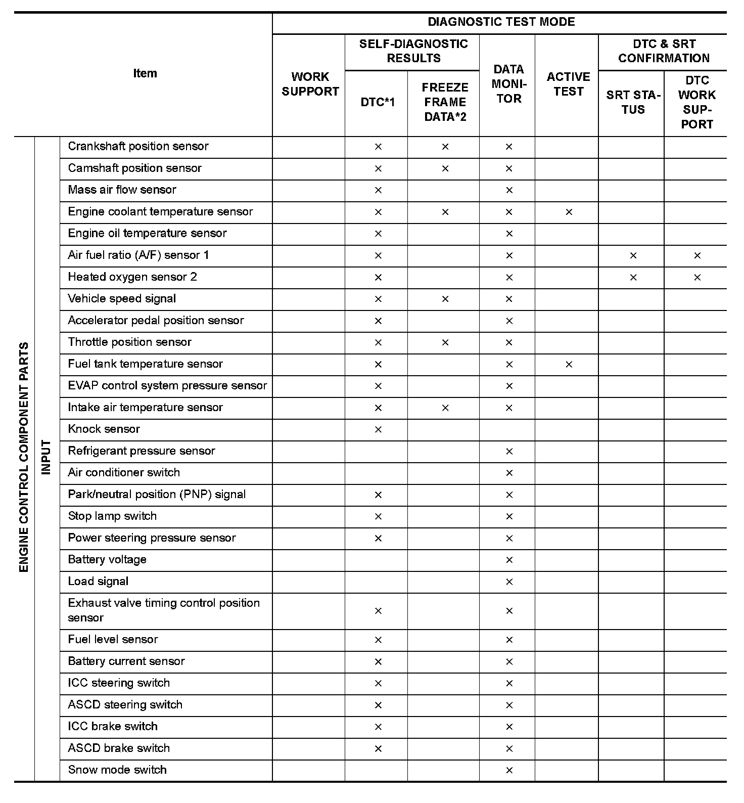 Regarding items of DTC and 1st trip DTC, refer to Testing and Inspection.