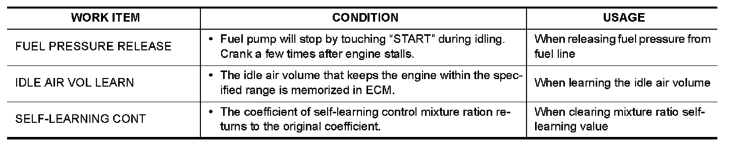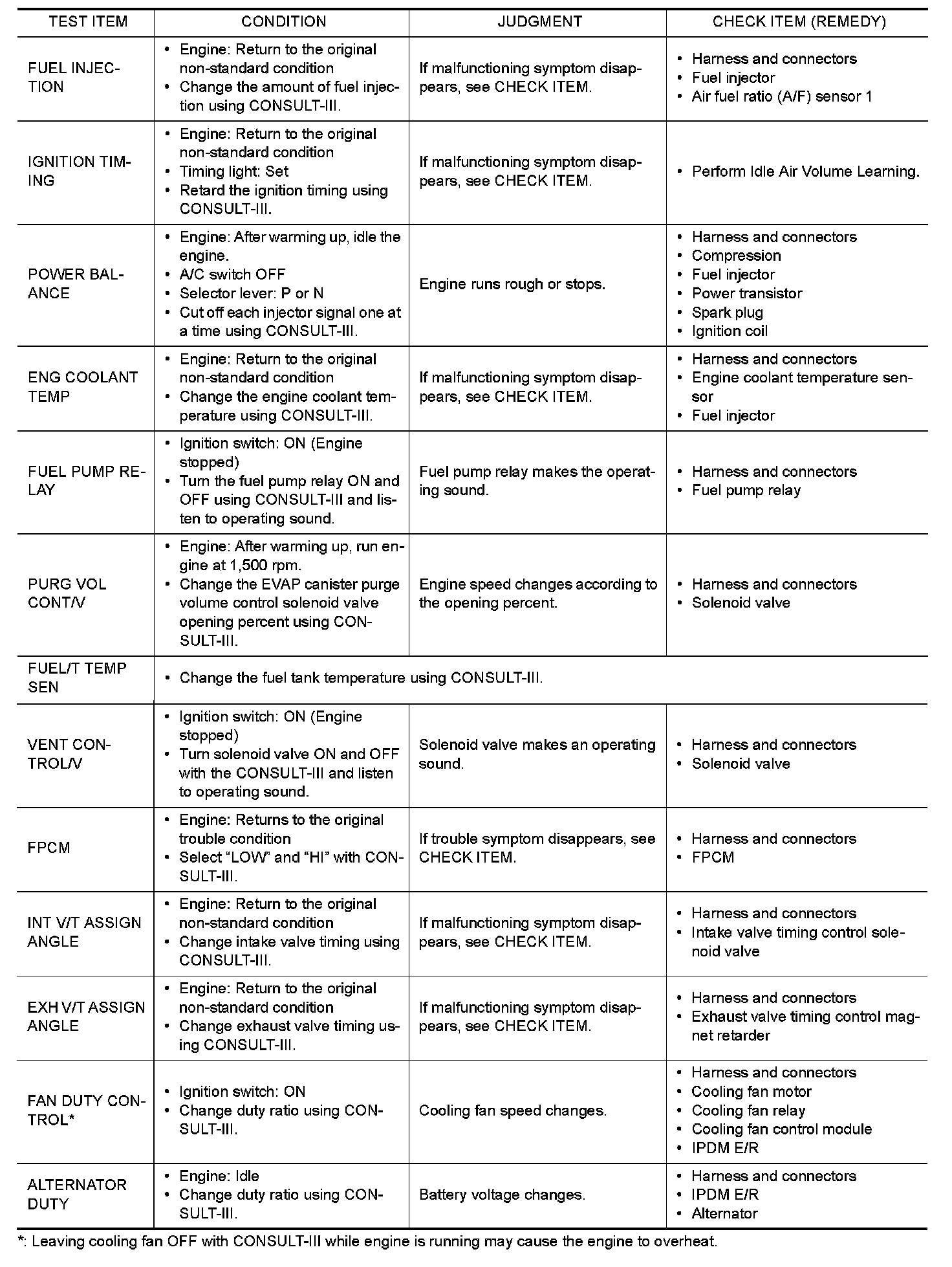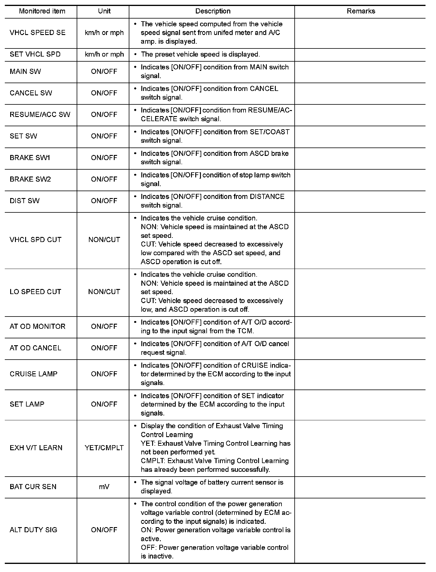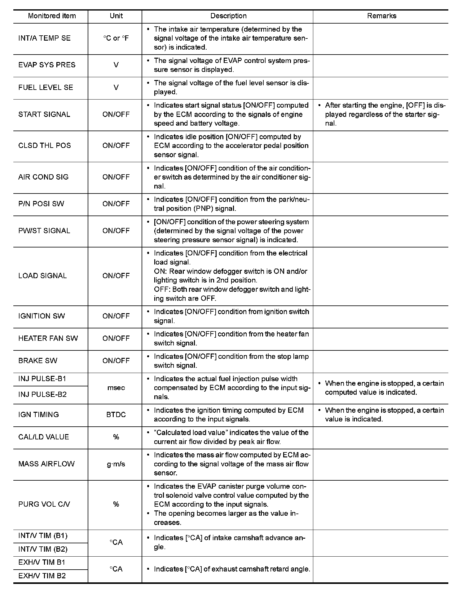 Regarding items of DTC and 1st trip DTC, refer to Testing and Inspection.