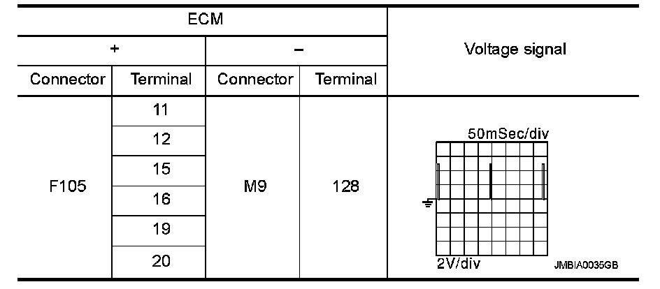 2. Read the voltage signal between ECM harness connector terminals under the following conditions with an oscilloscope.