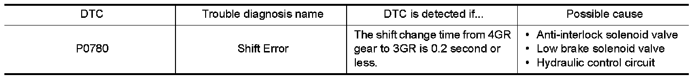 - TCM measures the downshift time from 4GR to 3GR during "D" position, and detects the malfunction if the shifting time is excessively short.