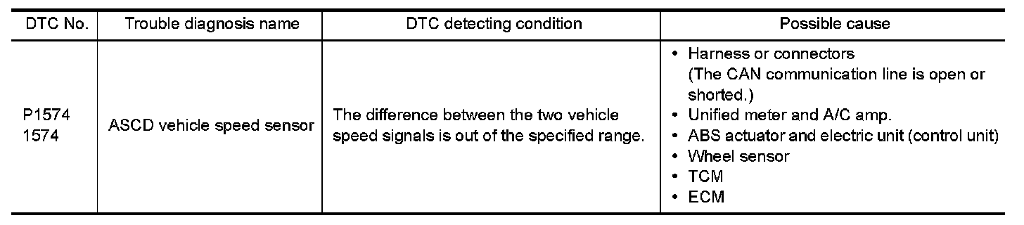 DTC P1574 ASCD VEHICLE SPEED SENSOR