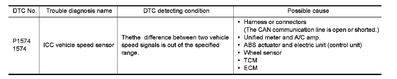 DTC P1574 ICC VEHICLE SPEED SENSOR