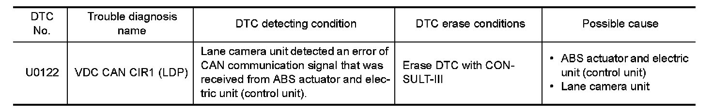 Erase DTC memory of lane camera unit with self-diagnosis of CONSULT-III.