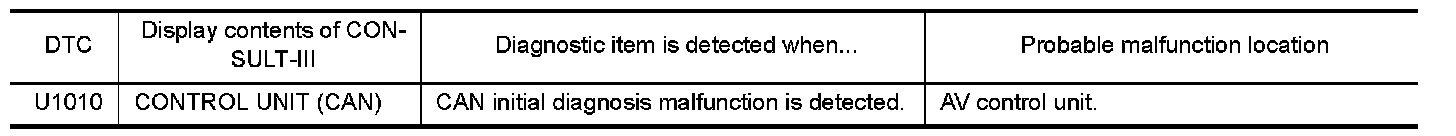 When DTC U1010 is detected, replace AV control unit.