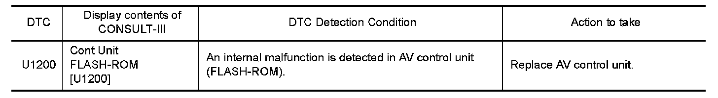 Replace the AV control unit if this DTC is displayed. Refer to