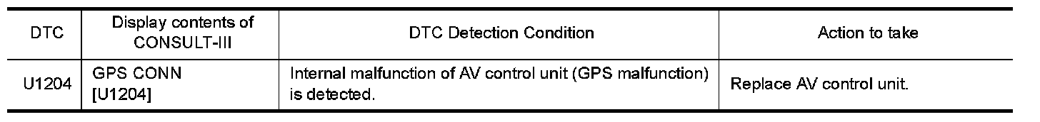Replace the AV control unit if this DTC is displayed. Refer to With Mobile Entertainment System.